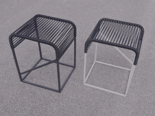 Hocker12x12mm powdercoated Steel + Polypropylen CordFarbe: Lichtgrau, schwarz-grau, leuchtrot, schwefelgelb, blassgrünAbmessungen: L320 x W350 x H400← zur Übersicht