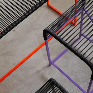 Hocker 12x12mm powdercoated Steel + Polypropylen CordFarbe: Lichtgrau, schwarz-grau, leuchtrot, schwefelgelb, blassgrünAbmessungen: L320 x W350 x H400← zur Übersicht
